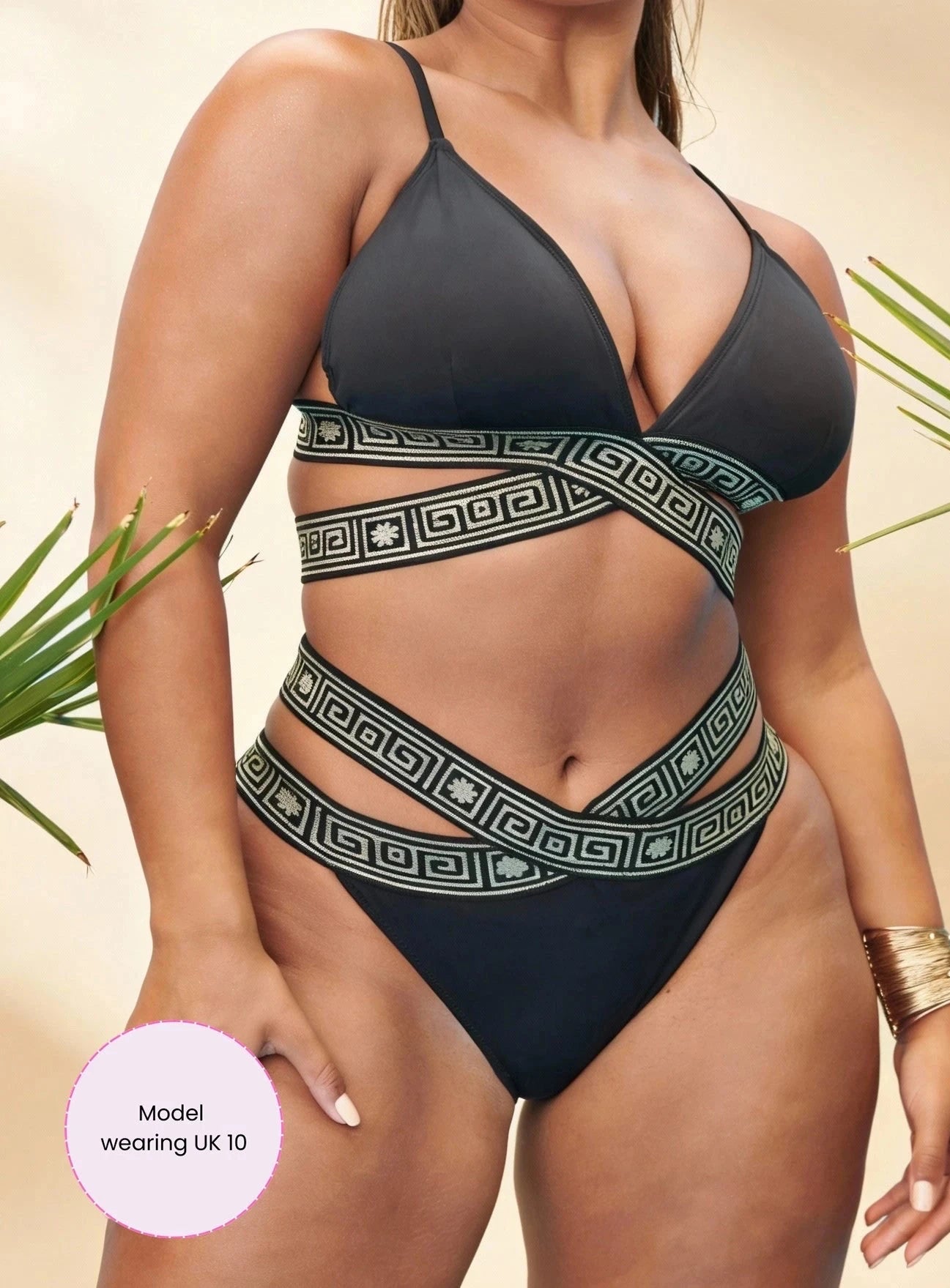 Designed to complement your curves and elevate your swimwear style, our Black Mosaic Bikini Bottoms combine luxury detailing with confidence-boosting comfort.